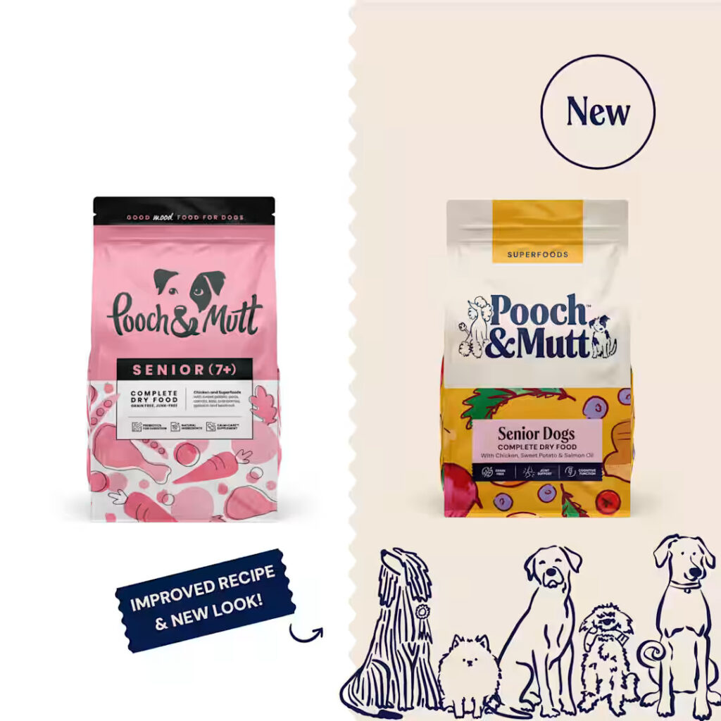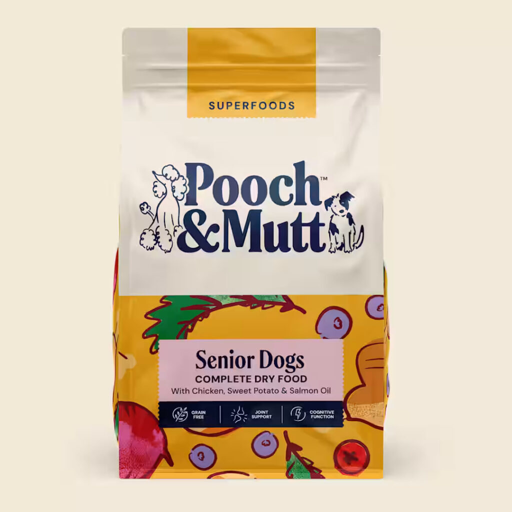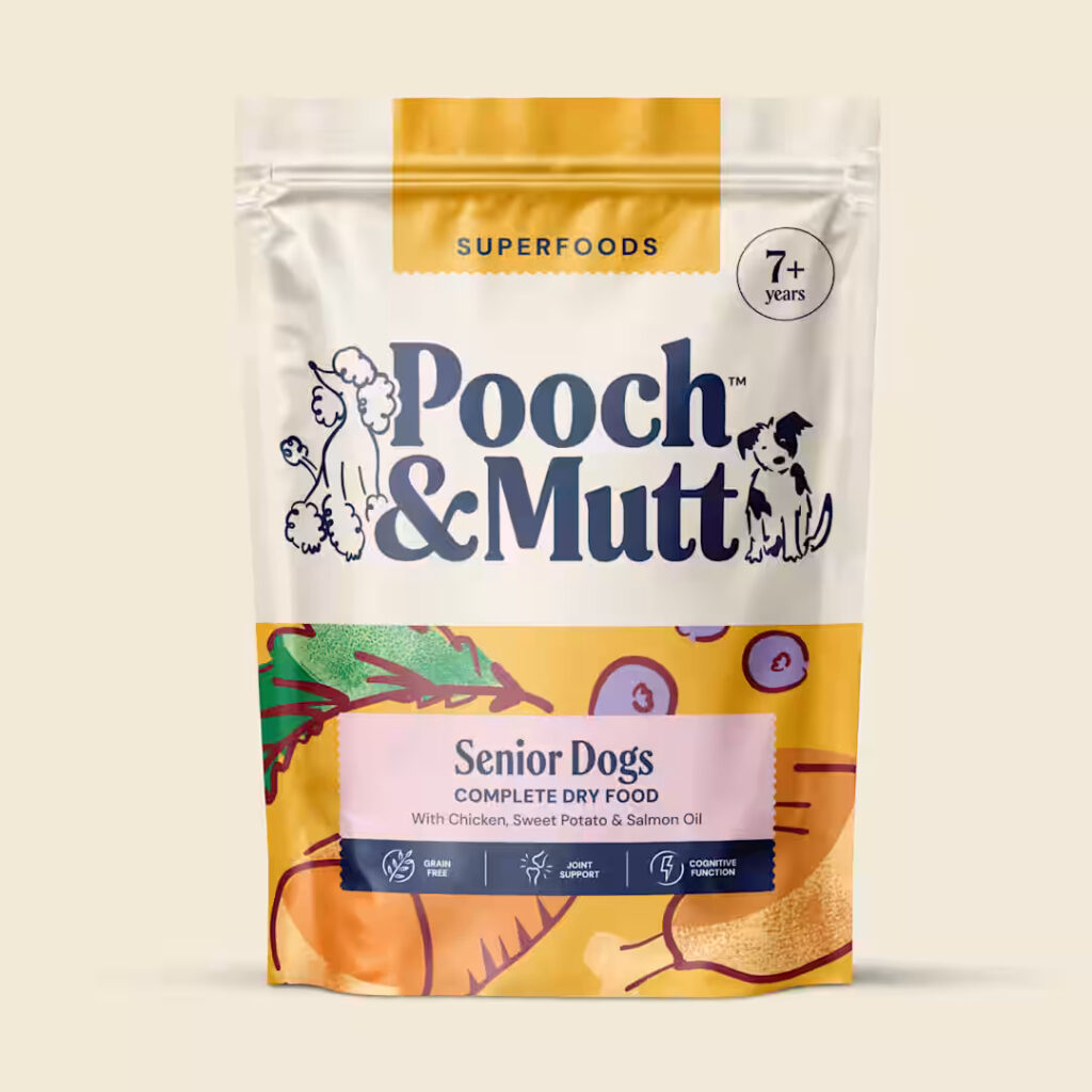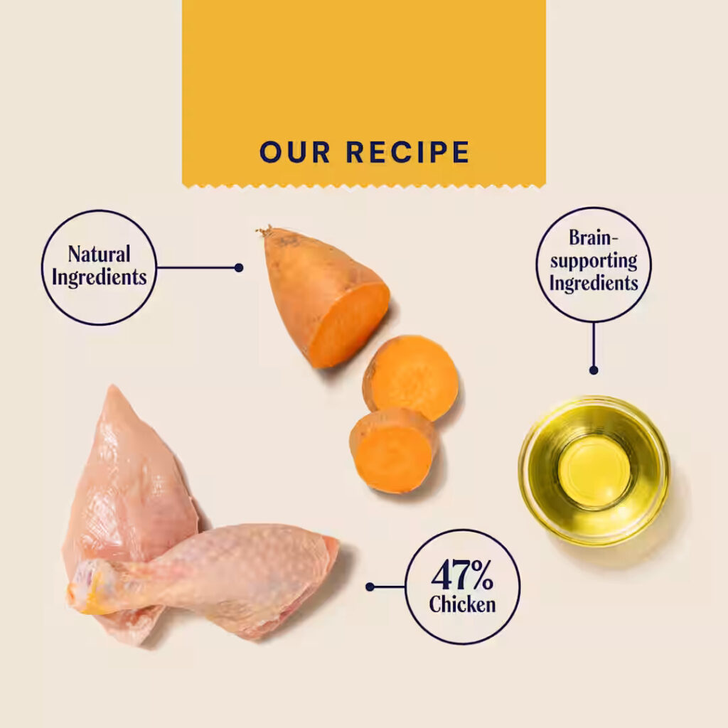 Grain free, junk free πλήρης ξηρή τροφή κοτόπουλο με υπερτροφές για υπερήλικους σκύλους.